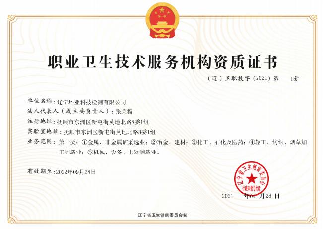 遼寧環(huán)亞科技檢測(cè)有限公司秉承“公平、公正、客觀、真實(shí)”的服務(wù)理念,力求為遼寧省各企事業(yè)等用人單位提供更優(yōu)質(zhì)的服務(wù),公司領(lǐng)導(dǎo)率領(lǐng)全體員工歷時(shí)一年零八個(gè)月的時(shí)間操練各項(xiàng)基本技能,于2016年8月9日取得了(遼)安職技字(2016)第B-0019號(hào)《職業(yè)衛(wèi)生技術(shù)服務(wù)機(jī)構(gòu)資質(zhì)證書》